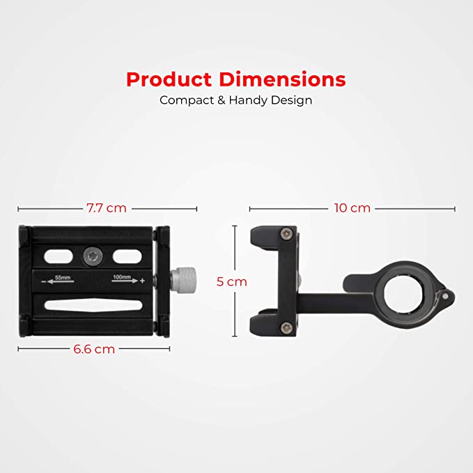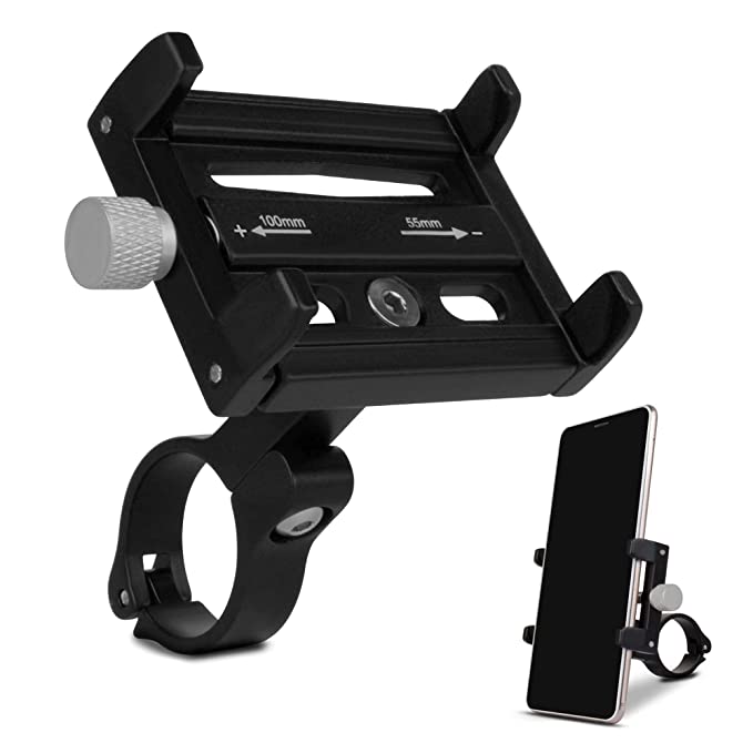 - ADJUSTABLE MOUNTING SOCKET - With a max. diameter of UPTO 1.4 INCHES - Can be adjusted as per your Bike Handle Thickness to fix on ALL TYPES OF HANDLEBARS. SHAKE FREE Metal Screw Fixing Bracket - Locks your phone firmly and gives vibration less viewing, no matter where the adventure takes you!
