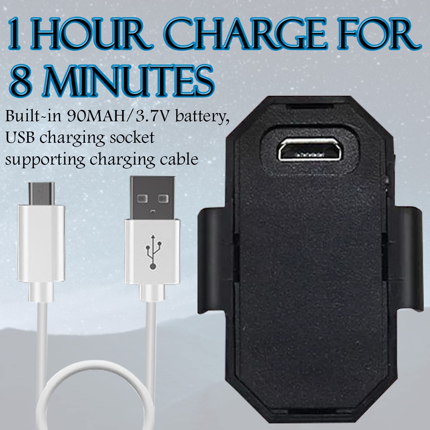| 1 Hour charge for 8 MinutesBuilt-in 90MAH/3.7V battery, USB charging sockets supporting charging cable. | Switch ButtonPress and hold for 2 seconds to switch on and off, short press to adjust the light mode can be cycled under seven colors of (red/blue/green/white/ purple/yellow/ice blue) fast flash, slow flash, always on. | USB Charging Port