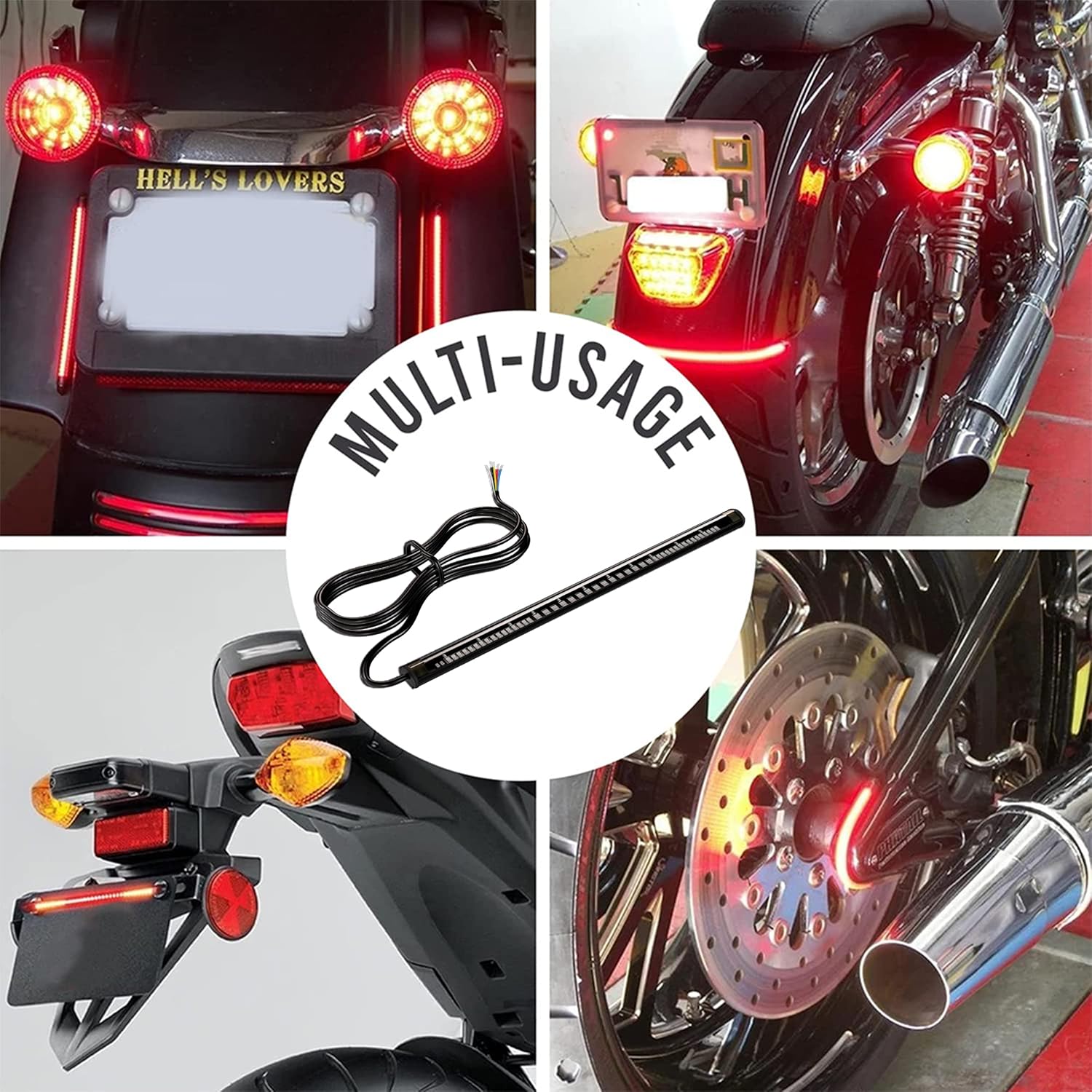 - Multi-functional led strip: flexible led has a streamer design that can be used for a wide number of functions like tail light, running and driving light, turn signal light, brake light, parking light, etc. an ideal safety and stylish motorcycle accessory