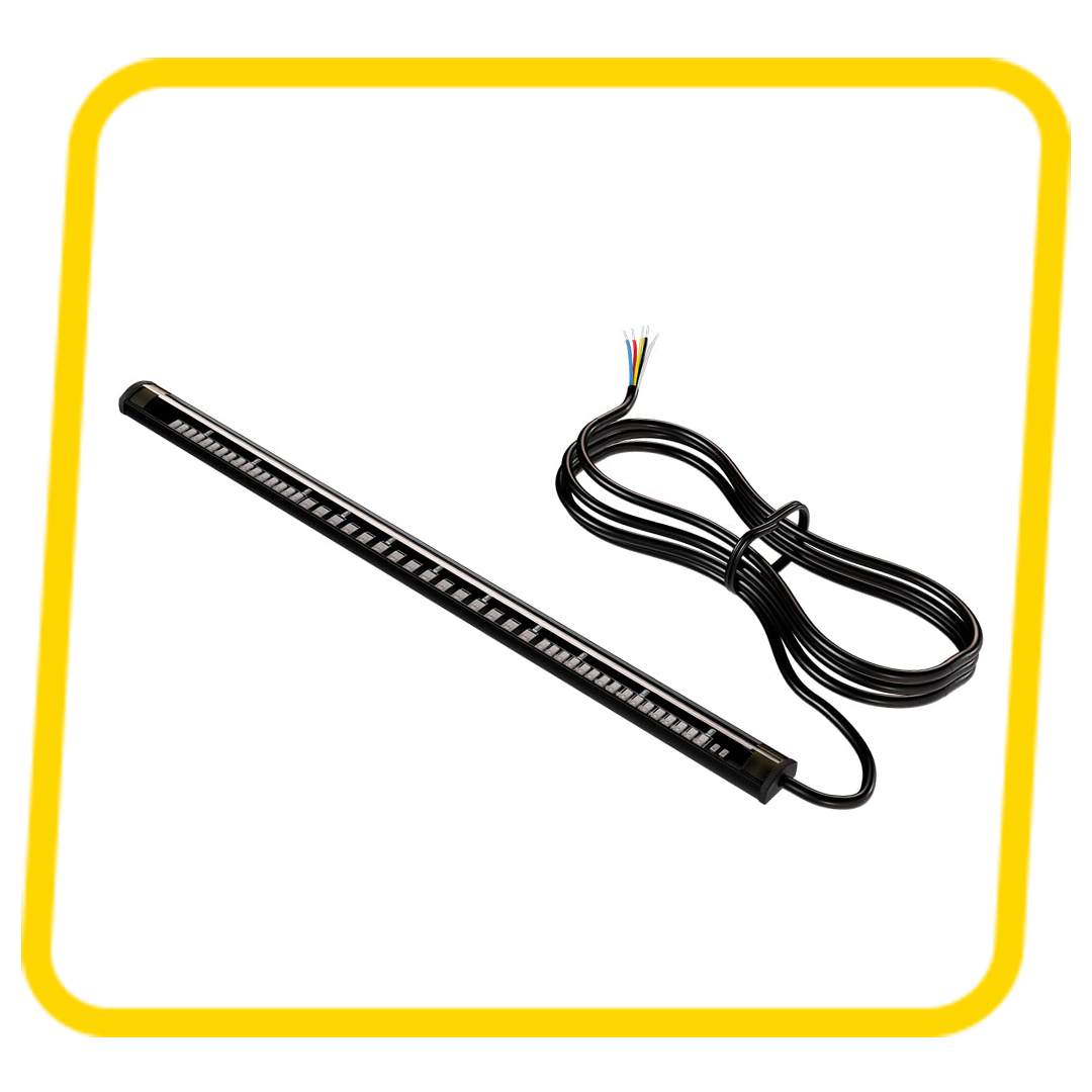 - EASY TO INSTALL: Featured with high-quality 3M automotive adhesive to mount easily over the back side of the vehicles, this LED light strip is designed with 5 Wires Connection: Black for Negative, Red for Brake Light, White for Running Light, Green for Left Turn Signal and Yellow for Right Turn Signal.